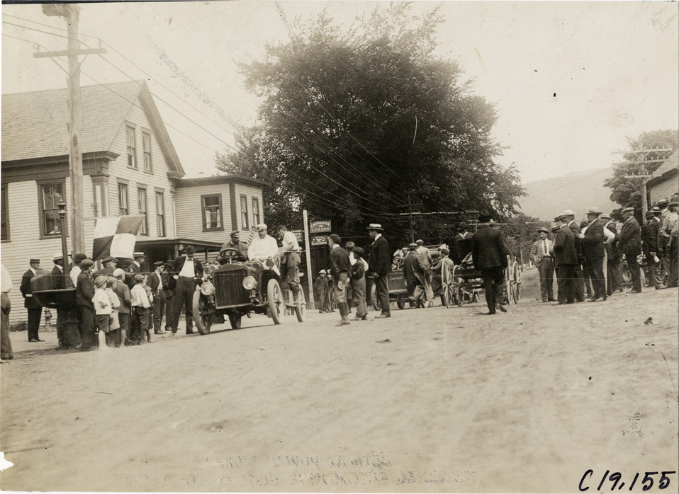 Favorite this☆ Spectators surrounding automobiles in street, 1906 Glidden Tour Description: View of spectators surrounding cars in street during the 1906 Glidden Tour. Wooden-frame commercial building on left. Handwritten on back: "Tours--Glidden Tour, 1906." Details Resource ID: na021731 Subject: Automobiles Spectators Glidden Tour (1906) Automobile driving--Competitions Photographic prints Date Issued: 1906-07 Format: 1 photographic print ; 4.75 x 6.5 in. Member of: National Automotive History Collection Lazarnick Collection Filing Location: Tours--Glidden Tour, 1906 #22 Negative Number: Negative #C19,155 Rights: Physical rights are retained by DPL. Copyright is retained in accordance with U.S. copyright laws.