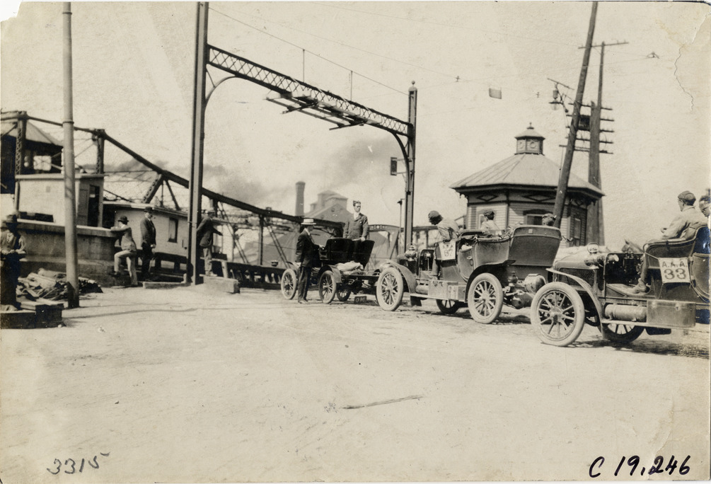 Favorite this☆ Motorists in automobiles approaching bridge, 1906 Glidden Tour Description: View of motorists in cars approaching a bridge during the 1906 Glidden Tour. Handwritten on back: "Tours--Glidden Tour, 1906." Details Resource ID: na021820 Subject: Automobiles Bridges Glidden Tour (1906) Automobile driving--Competitions Photographic prints Date Issued: 1906-07 Format: 1 photographic print ; 4.5 x 6.75 in. Member of: National Automotive History Collection Lazarnick Collection Filing Location: Tours--Glidden Tour, 1906 #26 Negative Number: Negative #C19,246 Rights: Physical rights are retained by DPL. Copyright is retained in accordance with U.S. copyright laws.