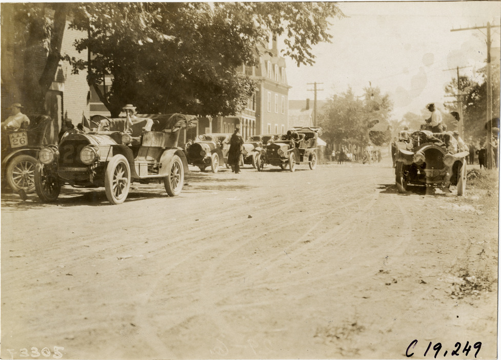 Favorite this☆ Motorists with automobiles at St. Joseph, Quebec, 1906 Glidden Tour Description: View of motorists with cars in street at St. Joseph, Quebec during the 1906 Glidden Tour. Handwritten on back: "Tours--Glidden Tour, 1906." Details Resource ID: na021823 Subject: Automobiles--Quebec (Province) Streets--Quebec (Province) Glidden Tour (1906) Automobile driving--Competitions Photographic prints Date Issued: 1906-07 Format: 1 photographic print ; 4.75 x 6.5 in. Member of: National Automotive History Collection Lazarnick Collection Filing Location: Tours--Glidden Tour, 1906 #26 Negative Number: Negative #C19,249 Rights: Physical rights are retained by DPL. Copyright is retained in accordance with U.S. copyright laws.