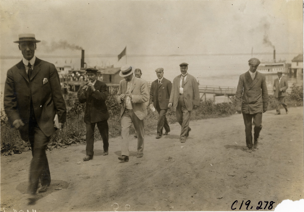 Favorite this☆ Men leaving dock, 1906 Glidden Tour Description: View of men leaving dock and walking along dirt road during the 1906 Glidden Tour. Two men play whistles. Handwritten on back: "Tours--Glidden Tour, 1906." Details Resource ID: na021849 Subject: Docks Whistles Glidden Tour (1906) Automobile driving--Competitions Photographic prints Date Issued: 1906-07 Format: 1 photographic print ; 4.75 x 6.75 in. Member of: National Automotive History Collection Lazarnick Collection Filing Location: Tours--Glidden Tour, 1906 #27 Negative Number: Negative #C19,278 Rights: Physical rights are retained by DPL. Copyright is retained in accordance with U.S. copyright laws.