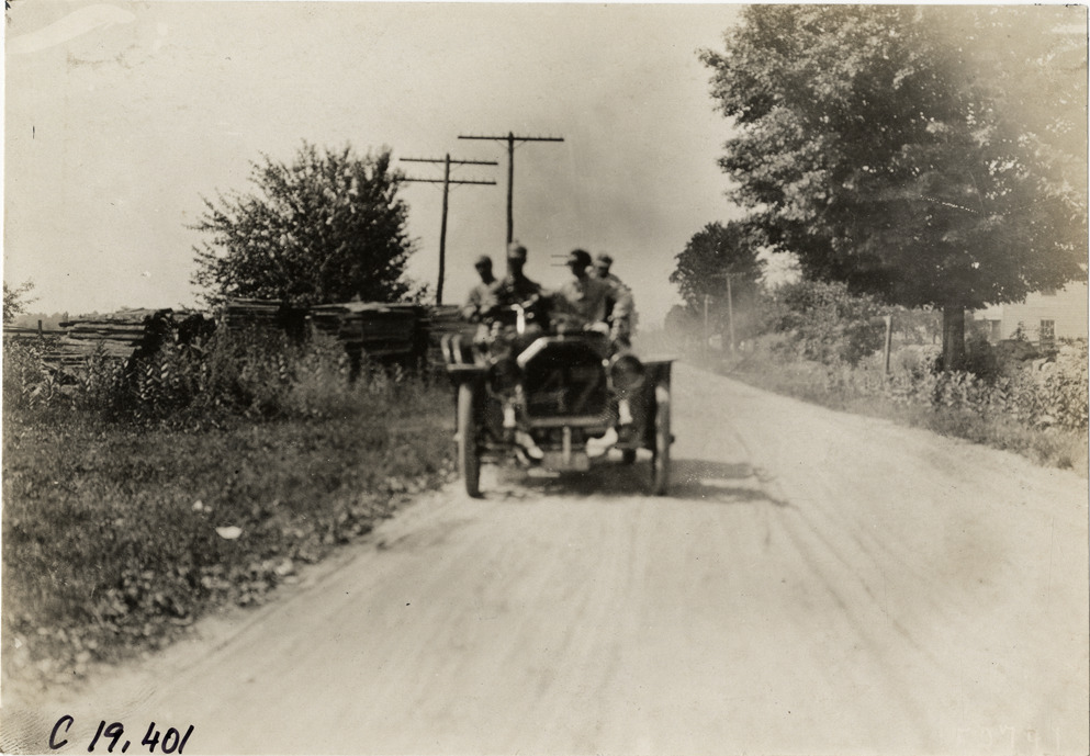 Motorists in automobile traveling on rural road, 1906 Glidden Tour