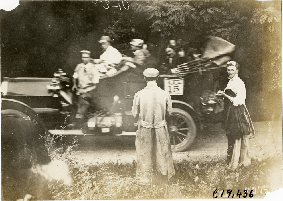 Favorite this☆ Motorists with automobile, 1906 Glidden Tour Description: View of motorists with car no. 15 during the 1906 Glidden Tour. Stamped on back: "Photo by N. Lazarnick, 29 West 42nd Street, New York." Handwritten on back: "Tours--Glidden Tour, 1906." Details Resource ID: na021996 Creator: Lazarnick, Nathan Subject: Automobiles Glidden Tour (1906) Automobile driving--Competitions Photographers--New York (State)--New York Photographic prints Date Issued: 1906-07 Format: 1 photographic print ; 4.75 x 6.5 in. Member of: National Automotive History Collection Lazarnick Collection Filing Location: Tours--Glidden Tour, 1906 #33 Negative Number: Negative #C19,436 Rights: Physical rights are retained by DPL. Copyright is retained in accordance with U.S. copyright laws.