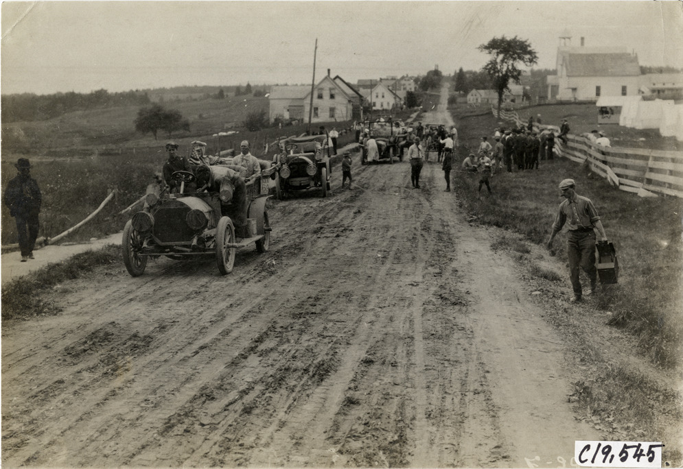 Favorite this☆ Automobiles lined up in road at St. Joseph, Quebec, 1906 Glidden Tour Description: View of cars lined up on rural road at St. Joseph, Quebec during the 1906 Glidden Tour. Handwritten on back: "A stop at St. Joseph. Tours--Glidden Tour, 1906." Details Resource ID: na022123 Subject: Automobiles--Quebec (Province) Rural roads--Quebec (Province) Glidden Tour (1906) Automobile driving--Competitions Photographic prints Date Issued: 1906-07 Format: 1 photographic print ; 4.75 x 6.75 in. Member of: National Automotive History Collection Lazarnick Collection Filing Location: Tours--Glidden Tour, 1906 #38 Negative Number: Negative #C19,545 Rights: Physical rights are retained by DPL. Copyright is retained in accordance with U.S. copyright laws.
