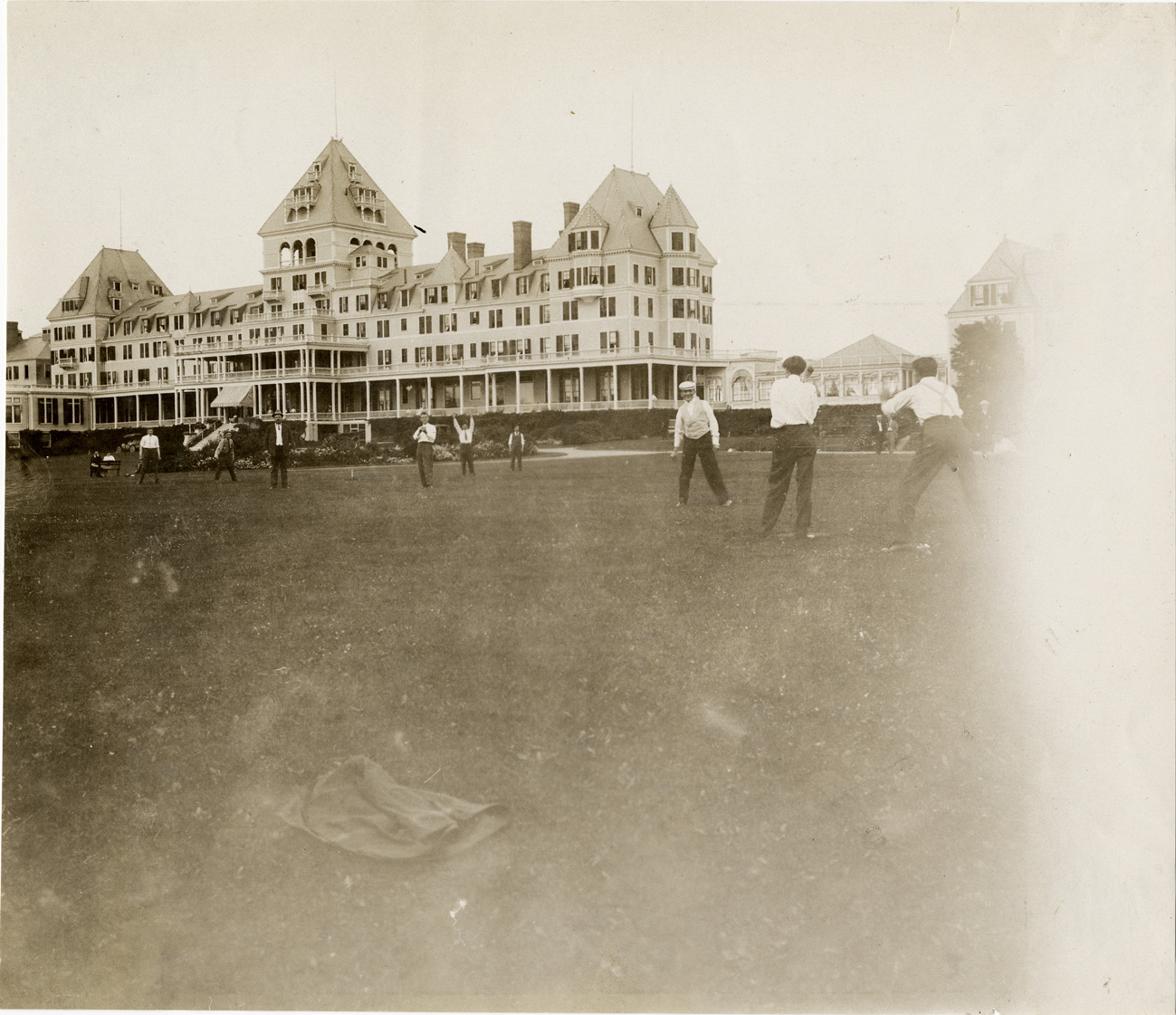 Baseball game in front of Hotel Champlain, 1906 Glidden Tour