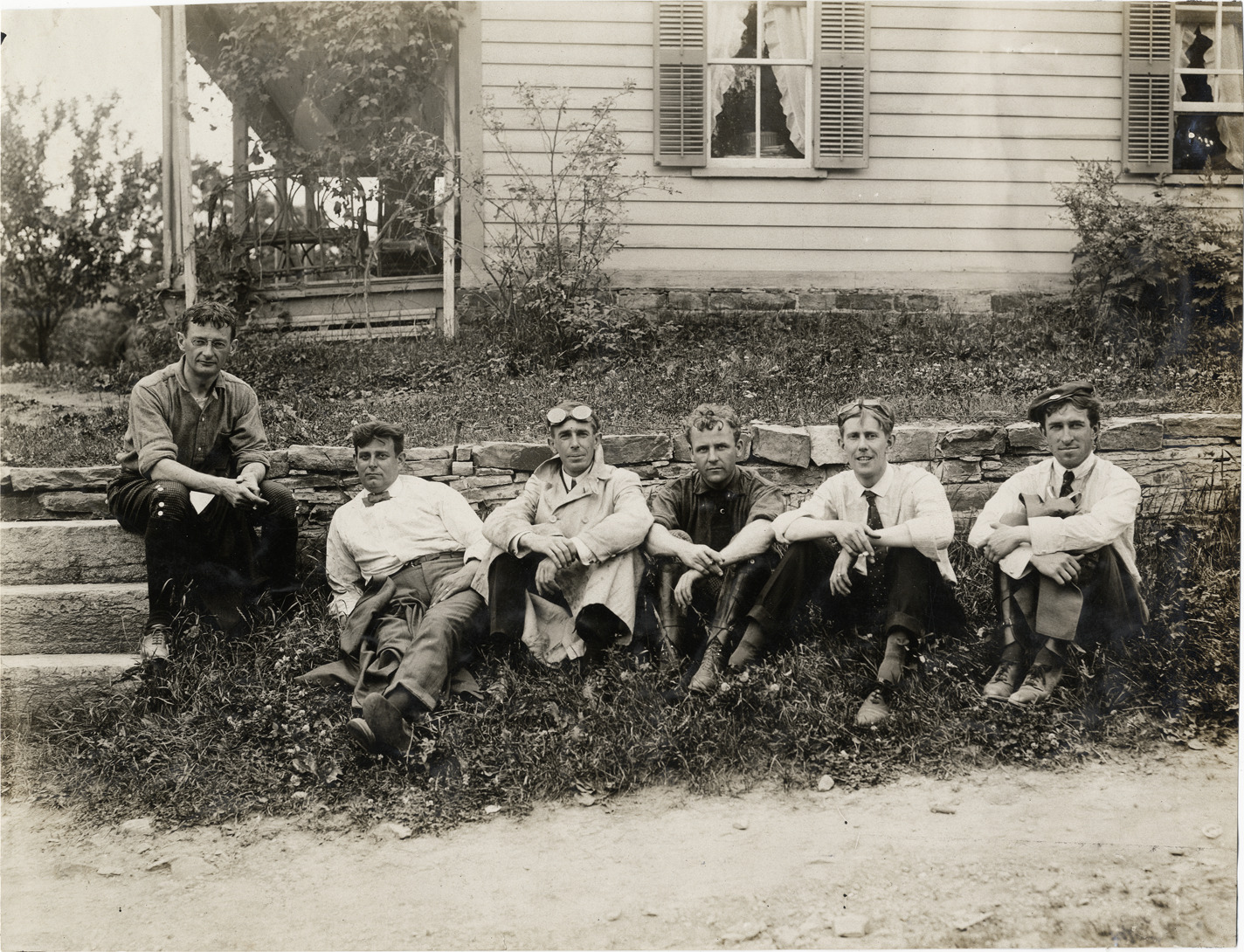 Favorite this☆ Motorists posing in front of house, 1906 Glidden Tour Description: View of several men posing on lawn next to wooden-frame house during the 1906 Glidden Tour. Handwritten on back: "Tours--Glidden Tour, 1906." Details Resource ID: na022233 Subject: Portraits, Group Automobile drivers Glidden Tour (1906) Automobile driving--Competitions Photographic prints Date Issued: 1906-07 Format: 1 photographic print ; 7.25 x 9.5 in. Member of: National Automotive History Collection Lazarnick Collection Filing Location: Tours--Glidden Tour, 1906 #42 Rights: Physical rights are retained by DPL. Copyright is retained in accordance with U.S. copyright laws.