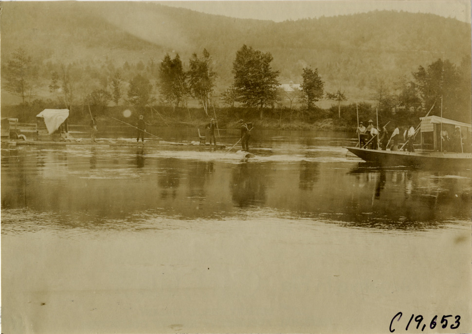 Log drivers on river, 1906 Glidden pathfinding expedition