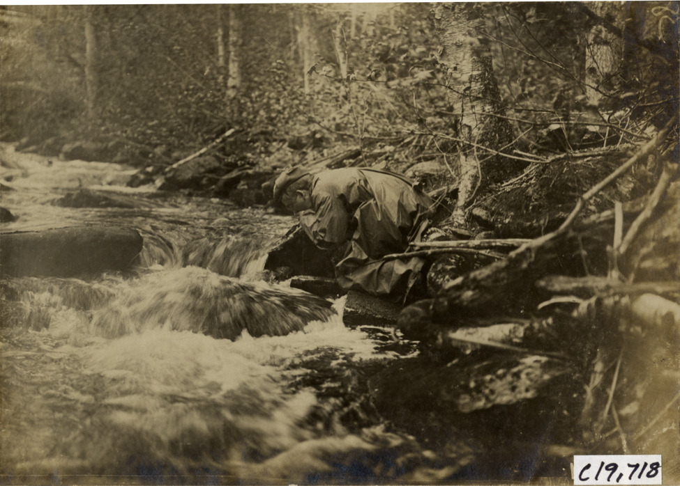 Favorite this☆ Man drinking from stream, 1906 Glidden pathfinding expedition Description: View of man drinking from stream during the pathfinding expedition for the 1906 Glidden Tour. Handwritten on back: "Tours--Glidden Tour Pathfinder, 1906." Details Resource ID: na022563 Subject: Rivers Glidden Tour (1906) Automobile travel Photographic prints Date Issued: 1906 Format: 1 photographic print ; 4.75 x 6.5 in. Member of: National Automotive History Collection Lazarnick Collection Filing Location: Tours--Glidden Tour Pathfinder, 1906 #7 Negative Number: Negative #C19,718 Rights: Physical rights are retained by DPL. Copyright is retained in accordance with U.S. copyright laws.