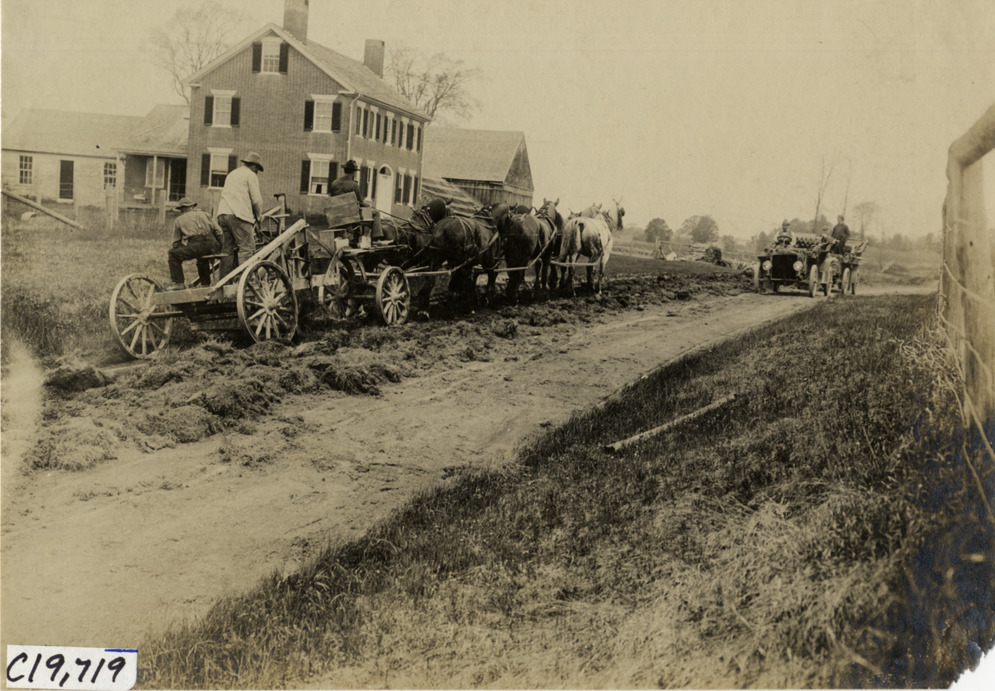 Horse-drawn road grader, 1906 Glidden pathfinding expedition