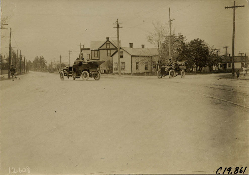 Favorite this☆ Automobiles turning corner, 1906 Glidden pathfinding expedition Description: View of motorists in two cars turning corner on dirt road during the pathfinding expedition for the 1906 Glidden Tour. Houses in background. Handwritten on back: "Tours--Glidden Tour Pathfinder, 1906." Details Resource ID: na022707 Subject: Automobiles Glidden Tour (1906) Automobile travel Photographic prints Date Issued: 1906 Format: 1 photographic print ; 4.75 x 6.5 in. Member of: National Automotive History Collection Lazarnick Collection Filing Location: Tours--Glidden Tour Pathfinder, 1906 #12 Negative Number: Negative #C19,861 Rights: Physical rights are retained by DPL. Copyright is retained in accordance with U.S. copyright laws.