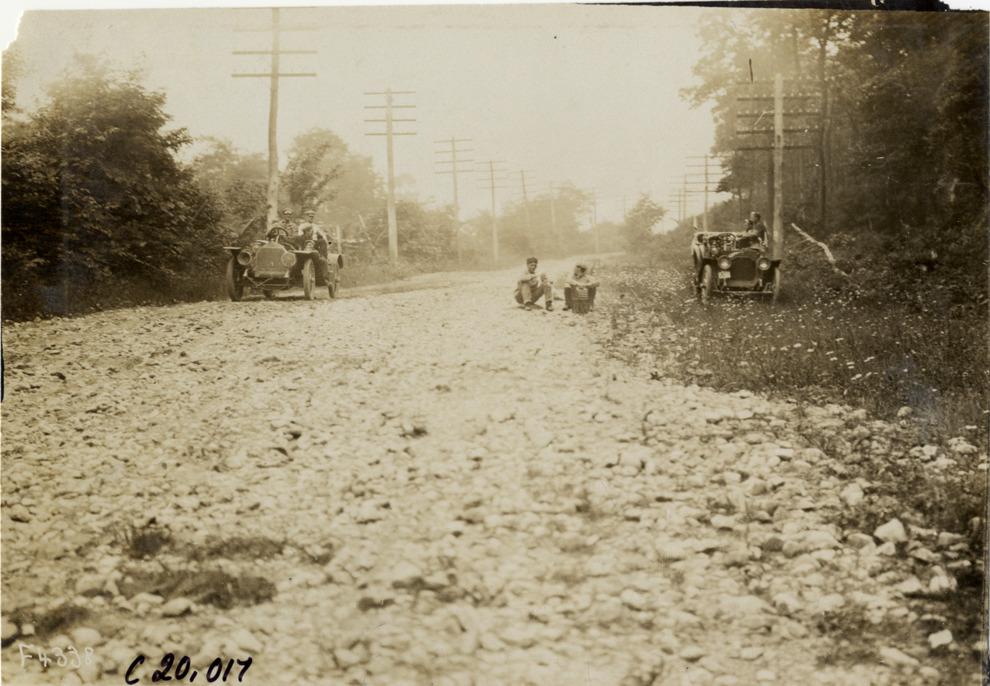 Favorite this☆ Motorists with automobiles on roadside, 1907 Glidden Tour Description: View of motorists with two cars on the side of rural road during the 1907 Glidden Tour. Two men sit in road. Handwritten on back: "Tours--Glidden Tour, 1907." Details Resource ID: na022875 Subject: Automobiles Rural roads Glidden Tour (1907) Automobile driving--Competitions--United States Photographic prints Date Issued: 1907-07 Format: 1 photographic print ; 4.5 x 6.75 in. Member of: National Automotive History Collection Lazarnick Collection Filing Location: Tours--Glidden Tour, 1907 #6 Negative Number: Negative #C20,017 Rights: Physical rights are retained by DPL. Copyright is retained in accordance with U.S. copyright laws.