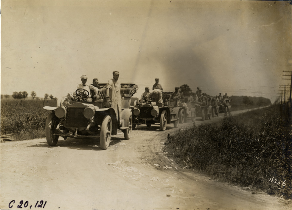 Favorite this☆ Automobiles lined up in road, 1907 Glidden Tour Description: View of motorists in cars lined up on rural dirt road during the 1907 Glidden Tour. Stamped on back: "Photo by N. Lazarnick, 29 West 42nd Street, New York." Handwritten on back: "Tours--Glidden Tour, 1907." Details Resource ID: na022982 Creator: Lazarnick, Nathan Subject: Automobiles Glidden Tour (1907) Automobile driving--Competitions--United States Photographers--New York (State)--New York Photographic prints Date Issued: 1907-07 Format: 1 photographic print ; 4.75 x 6.5 in. Member of: National Automotive History Collection Lazarnick Collection Filing Location: Tours--Glidden Tour, 1907 #10 Negative Number: Negative #C20,121 Rights: Physical rights are retained by DPL. Copyright is retained in accordance with U.S. copyright laws.