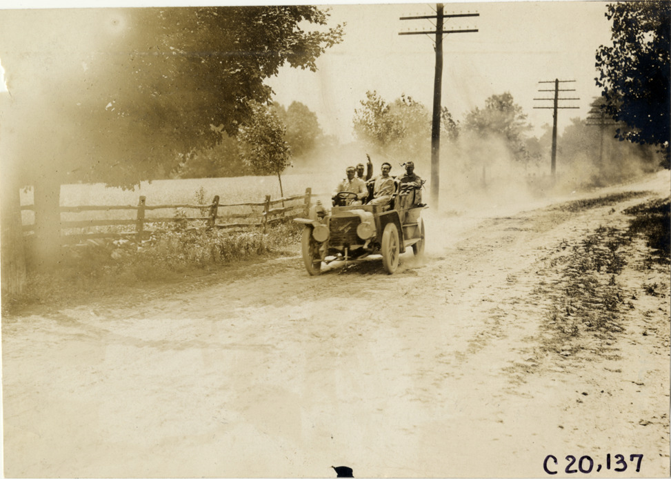 Favorite this☆ Motorists in automobile traveling on rural road, 1907 Glidden Tour Description: View of motorists in car traveling on rural dirt road during the 1907 Glidden Tour. Handwritten on back: "Tours--Glidden Tour, 1907." Details Resource ID: na023000 Subject: Automobiles Rural roads Glidden Tour (1907) Automobile driving--Competitions--United States Photographic prints Date Issued: 1907-07 Format: 1 photographic print ; 4.5 x 6.5 in. Member of: National Automotive History Collection Lazarnick Collection Filing Location: Tours--Glidden Tour, 1907 #11 Negative Number: Negative #C20,137 Rights: Physical rights are retained by DPL. Copyright is retained in accordance with U.S. copyright laws.