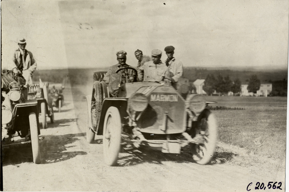 Favorite this☆ Motorists in Marmon automobile, 1908 Glidden Tour Description: View of motorists posing in Marmon car no. 21 during the 1908 Glidden Tour. Handwritten on back: "Tours--Glidden Tour, 1908." Details Resource ID: na023131 Subject: Marmon automobile Glidden Tour (1908) Automobile driving--Competitions--United States Photographic prints Date Issued: 1908-07 Format: 1 photographic print ; 4.5 x 6.75 in. Member of: National Automotive History Collection Lazarnick Collection Filing Location: Tours--Glidden Tour, 1908 #4 Negative Number: Negative #C20,562 Rights: Physical rights are retained by DPL. Copyright is retained in accordance with U.S. copyright laws.