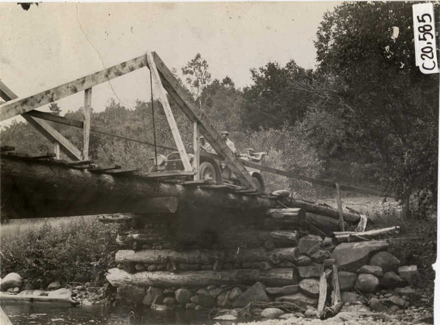Favorite this☆ Motorists in automobile crossing bridge, 1908 Glidden Tour Description: View of motorists in car crossing bridge constructed of logs during the 1908 Glidden Tour. Handwritten on back: "Tours--Glidden Tour, 1908." Details Resource ID: na023156 Subject: Wooden bridges Automobiles Glidden Tour (1908) Automobile driving--Competitions--United States Photographic prints Date Issued: 1908-07 Format: 1 photographic print ; 4.5 x 6 in. Member of: National Automotive History Collection Lazarnick Collection Filing Location: Tours--Glidden Tour, 1908 #5 Negative Number: Negative #C20,585 Rights: Physical rights are retained by DPL. Copyright is retained in accordance with U.S. copyright laws.