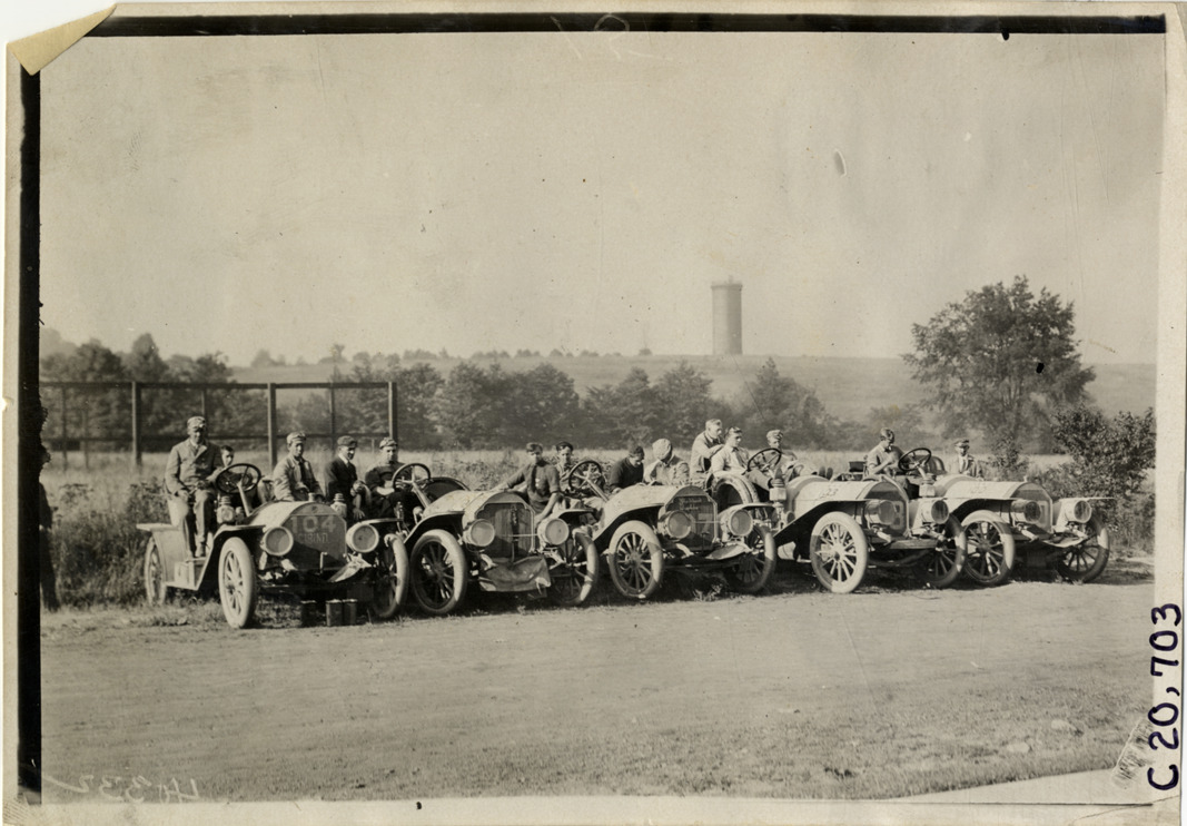 Favorite this☆ Motorists posing in automobiles, 1908 Glidden Tour Description: View of motorists posing in row of cars at edge of field during the 1908 Glidden Tour. Premier car no. 104 on left. Handwritten on back: "Tours--Glidden Tour, 1908." Details Resource ID: na023275 Subject: Automobiles Premier Motor Manufacturing Company Glidden Tour (1908) Automobile driving--Competitions--United States Photographic prints Date Issued: 1908-07 Format: 1 photographic print ; 5 x 7 in. Member of: National Automotive History Collection Lazarnick Collection Filing Location: Tours--Glidden Tour, 1908 #10 Negative Number: Negative #C20,703 Rights: Physical rights are retained by DPL. Copyright is retained in accordance with U.S. copyright laws.
