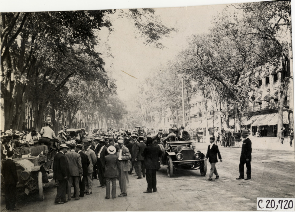Favorite this☆ Crowd surrounding automobiles in street, 1908 Glidden Tour Description: View of crowd surrounding cars in street during the 1908 Glidden Tour. Policeman stands in road on right. Handwritten on back: "Tours--Glidden Tour, 1908." Details Resource ID: na023292 Subject: Crowds Automobiles Glidden Tour (1908) Automobile driving--Competitions--United States Photographic prints Date Issued: 1908-07 Format: 1 photographic print ; 4.5 x 6.5 in. Member of: National Automotive History Collection Lazarnick Collection Filing Location: Tours--Glidden Tour, 1908 #10 Negative Number: Negative #C20,720 Rights: Physical rights are retained by DPL. Copyright is retained in accordance with U.S. copyright laws.