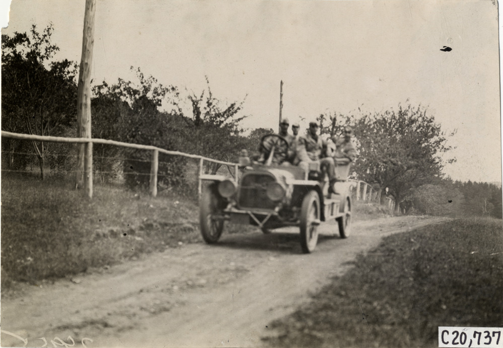 Favorite this☆ Motorists in automobile traveling on rural road, 1908 Glidden Tour Description: View of motorists in car traveling on rural dirt road during the 1908 Glidden Tour. Handwritten on back: "Tours--Glidden Tour, 1908." Details Resource ID: na023311 Subject: Automobiles Rural roads Glidden Tour (1908) Automobile driving--Competitions--United States Photographic prints Date Issued: 1908-07 Format: 1 photographic print ; 4.75 x 6.75 in. Member of: National Automotive History Collection Lazarnick Collection Filing Location: Tours--Glidden Tour, 1908 #11 Negative Number: Negative #C20,737 Rights: Physical rights are retained by DPL. Copyright is retained in accordance with U.S. copyright laws.