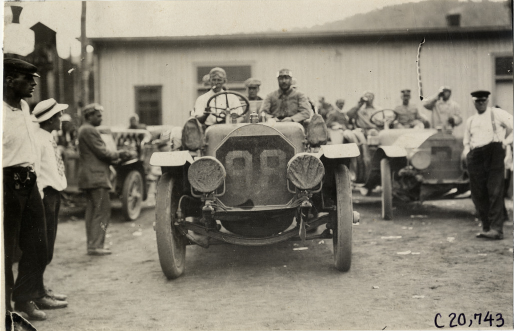 Favorite this☆ Motorists in Premier pilot automobile, 1908 Glidden Tour Description: Front view of motorists in Premier pilot car no. 98 during the 1908 Glidden Tour. Cars and wooden-frame building in background. Handwritten on back: "Tours--Glidden Tour, 1908." Details Resource ID: na023317 Subject: Automobiles Premier Motor Manufacturing Company Glidden Tour (1908) Automobile driving--Competitions--United States Photographic prints Date Issued: 1908-07 Format: 1 photographic print ; 4.5 x 6.75 in. Member of: National Automotive History Collection Lazarnick Collection Filing Location: Tours--Glidden Tour, 1908 #11 Negative Number: Negative #C20,743 Rights: Physical rights are retained by DPL. Copyright is retained in accordance with U.S. copyright laws.
