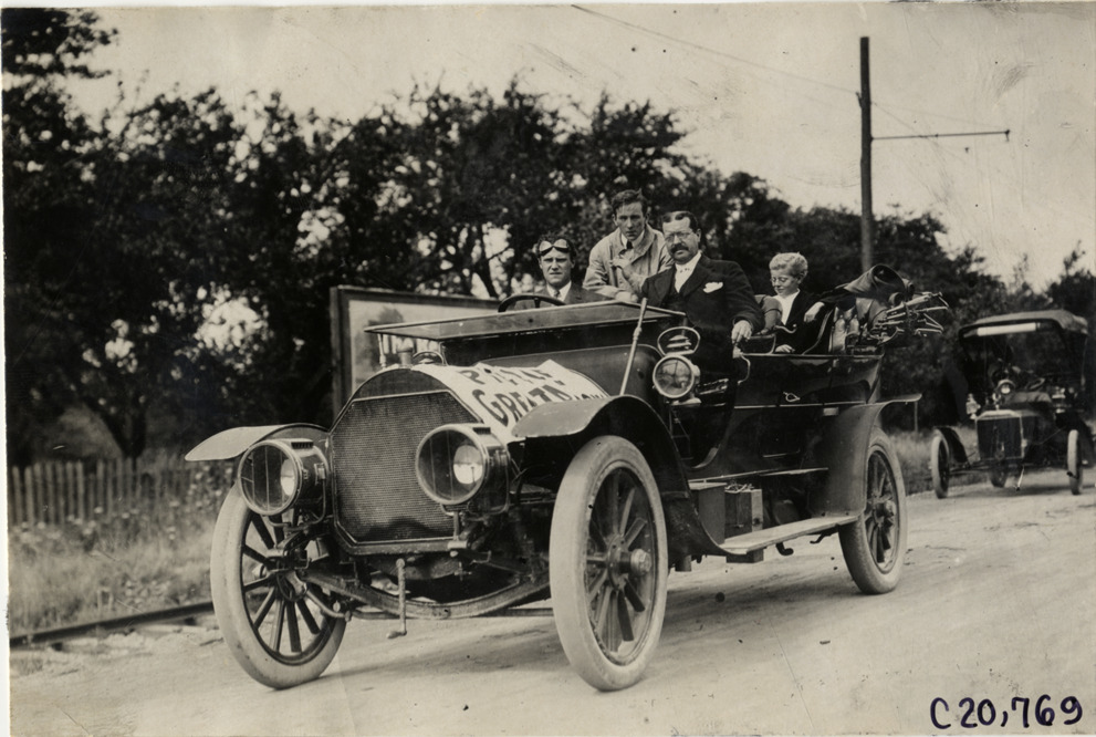 Favorite this☆ Motorists in Pierce Great Arrow automobile, 1908 Glidden Tour Description: View of motorists in Pierce Great Arrow car during the 1908 Glidden Tour. Handwritten on back: "Tours--Glidden Tour, 1908." Details Resource ID: na023343 Subject: Pierce-Arrow automobile Glidden Tour (1908) Automobile driving--Competitions--United States Photographic prints Date Issued: 1908-07 Format: 1 photographic print ; 4.5 x 6.75 in. Member of: National Automotive History Collection Lazarnick Collection Filing Location: Tours--Glidden Tour, 1908 #12 Negative Number: Negative #C20,769 Rights: Physical rights are retained by DPL. Copyright is retained in accordance with U.S. copyright laws.