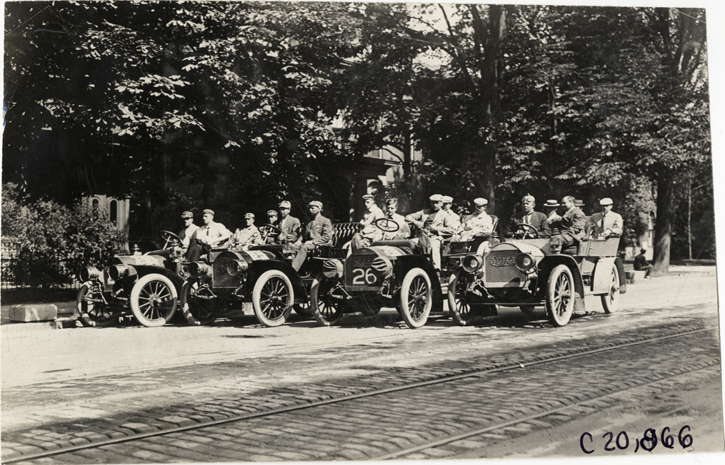 Favorite this☆ Motorists posing in Studebaker automobiles, 1908 Glidden Tour Description: View of motorists posing in row of Studebaker cars during the 1908 Glidden Tour. Handwritten on back: "Tours--Glidden Tour, 1908." Details Resource ID: na023437 Subject: Studebaker automobile Glidden Tour (1908) Automobile driving--Competitions--United States Photographic prints Date Issued: 1908-07 Format: 1 photographic print ; 4.25 x 6.75 in. Member of: National Automotive History Collection Lazarnick Collection Filing Location: Tours--Glidden Tour, 1908 #16 Negative Number: Negative #C20,866 Rights: Physical rights are retained by DPL. Copyright is retained in accordance with U.S. copyright laws.