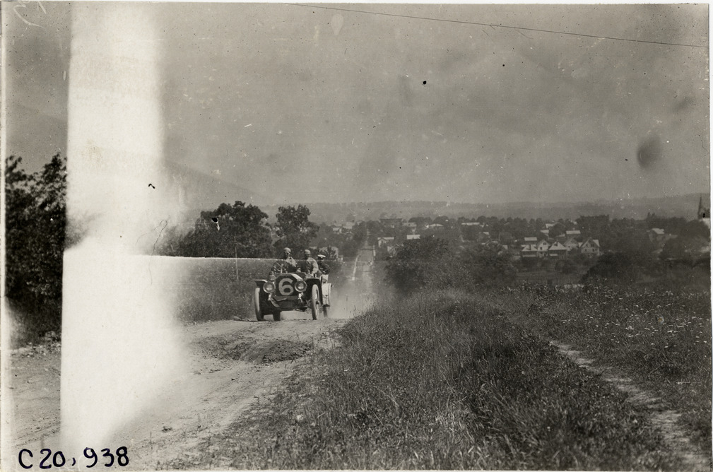 Favorite this☆ Motorists in Peerless automobile traveling on rural road, 1908 Glidden Tour Description: View of motorists in Peerless car no. 6 traveling on rural dirt road during the 1908 Glidden Tour. Handwritten on back: "Tours--Glidden Tour, 1908." Details Resource ID: na023509 Subject: Peerless automobile Rural roads Glidden Tour (1908) Automobile driving--Competitions--United States Photographic prints Date Issued: 1908-07 Format: 1 photographic print ; 4.5 x 6.75 in. Member of: National Automotive History Collection Lazarnick Collection Filing Location: Tours--Glidden Tour, 1908 #19 Negative Number: Negative #C20,938 Rights: Physical rights are retained by DPL. Copyright is retained in accordance with U.S. copyright laws.