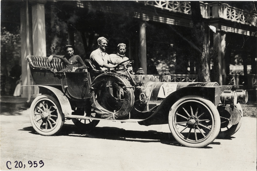 Motorists in Franklin automobile at Bedford, Pennsylvania, 1908 Glidden Tour