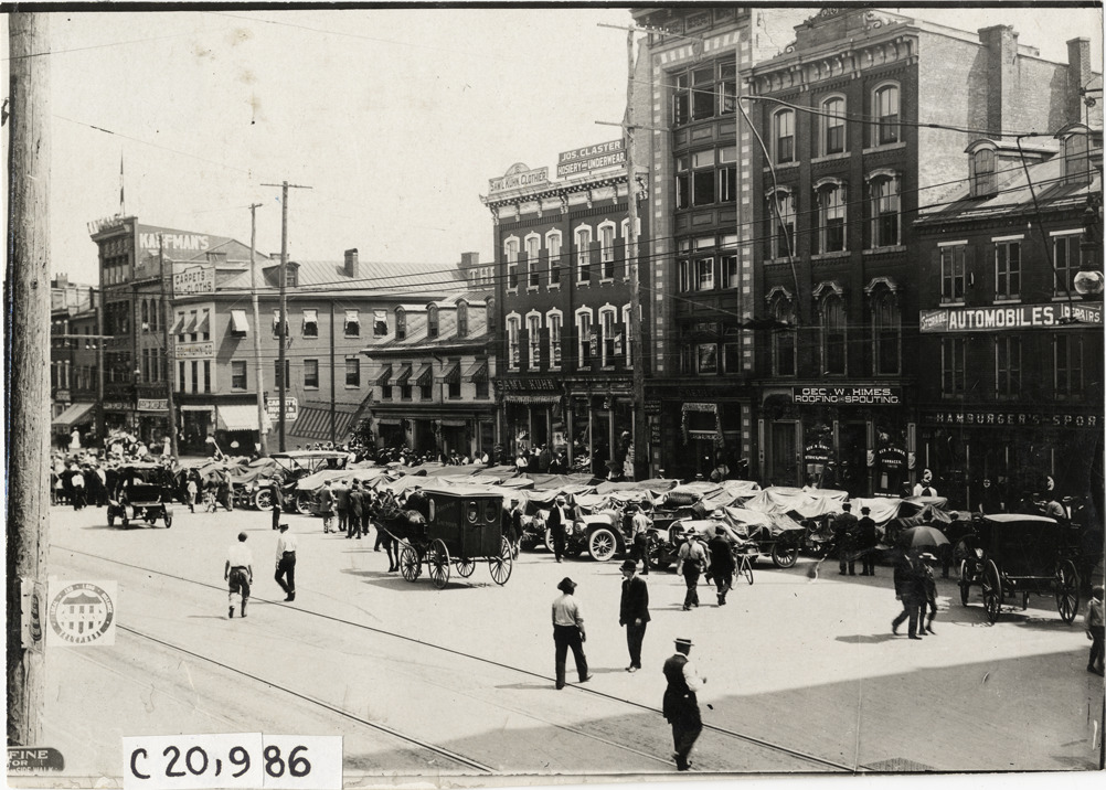 Favorite this☆ Automobiles parked in street, 1908 Glidden Tour Description: View of rows of cars, some covered with tarpaulins, parked in street during the 1908 Glidden Tour. Horse-drawn wagon in foreground; commercial buildings in background. Handwritten on back: "Tours--Glidden Tour, 1908." Details Resource ID: na023557 Subject: Automobiles Commercial buildings Horse-drawn vehicles Glidden Tour (1908) Automobile driving--Competitions--United States Photographic prints Date Issued: 1908-07 Format: 1 photographic print ; 4.75 x 6.75 in. Member of: National Automotive History Collection Lazarnick Collection Filing Location: Tours--Glidden Tour, 1908 #21 Negative Number: Negative #C20,986 Rights: Physical rights are retained by DPL. Copyright is retained in accordance with U.S. copyright laws.