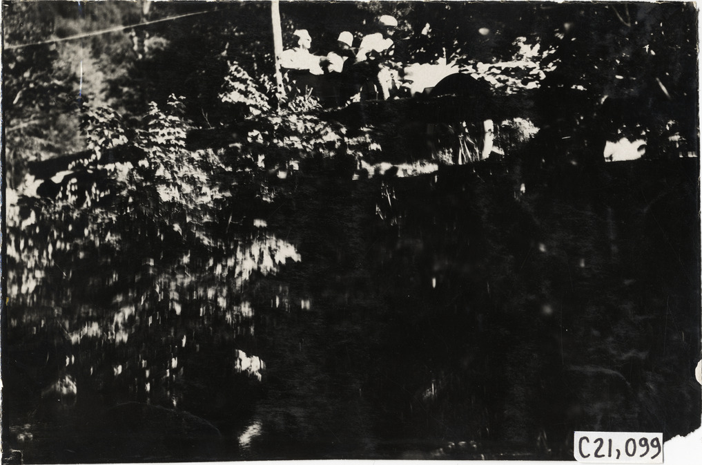 Motorists in automobile traveling on mountain road, 1908 Glidden Tour