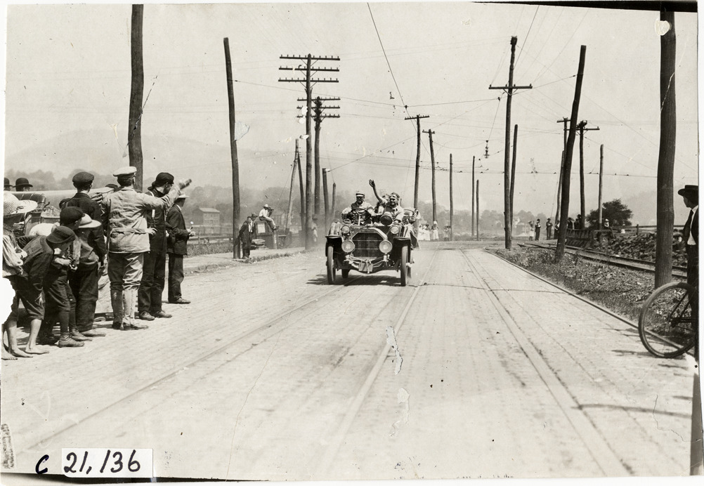 Favorite this☆ Motorists in Franklin automobile waving at spectators, 1908 Glidden Tour Description: View of motorists in Franklin car waving at spectators on roadside during the 1908 Glidden Tour. Handwritten on back: "Tours--Glidden Tour, 1908." Details Resource ID: na023711 Subject: Franklin automobile Glidden Tour (1908) Automobile driving--Competitions--United States Photographic prints Date Issued: 1908-07 Format: 1 photographic print ; 4.5 x 6.75 in. Member of: National Automotive History Collection Lazarnick Collection Filing Location: Tours--Glidden Tour, 1908 #27 Negative Number: Negative #C21,136 Rights: Physical rights are retained by DPL. Copyright is retained in accordance with U.S. copyright laws.