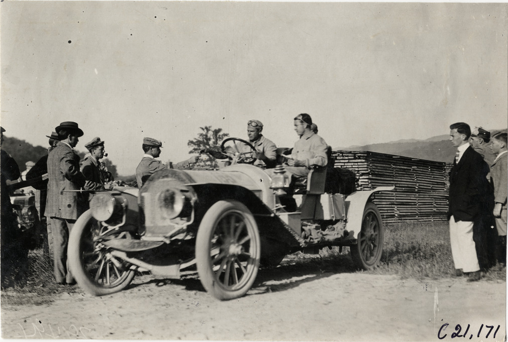 Favorite this☆ Motorists in automobile, 1908 Glidden Tour Description: View of motorists in car, surrounded by spectators, during the 1908 Glidden Tour. Handwritten on back: "Tours--Glidden Tour, 1908." Details Resource ID: na023746 Subject: Automobiles Glidden Tour (1908) Automobile driving--Competitions--United States Photographic prints Date Issued: 1908-07 Format: 1 photographic print ; 4.5 x 6.75 in. Member of: National Automotive History Collection Lazarnick Collection Filing Location: Tours--Glidden Tour, 1908 #28 Negative Number: Negative #C21,171 Rights: Physical rights are retained by DPL. Copyright is retained in accordance with U.S. copyright laws.
