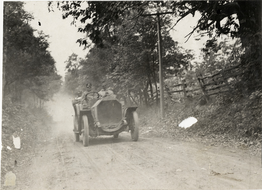 Favorite this☆ Motorists in automobile traveling on rural road, 1908 Glidden Tour Description: View of motorists in car traveling on rural dirt road during the 1908 Glidden Tour. Handwritten on back: "Tours--Glidden Tour, 1908." Details Resource ID: na023936 Subject: Automobiles Rural roads Glidden Tour (1908) Automobile driving--Competitions--United States Photographic prints Date Issued: 1908-07 Format: 1 photographic print ; 4.25 x 5.75 in. Member of: National Automotive History Collection Lazarnick Collection Filing Location: Tours--Glidden Tour, 1908 #36 Rights: Physical rights are retained by DPL. Copyright is retained in accordance with U.S. copyright laws.