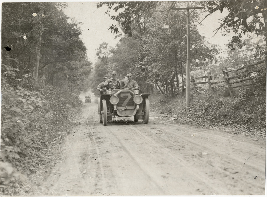 Favorite this☆ Motorists in Peerless automobile traveling on rural road, 1908 Glidden Tour Description: View of motorists in Peerless car no. 7 traveling on rural dirt road during the 1908 Glidden Tour. Handwritten on back: "Tours--Glidden Tour, 1908." Details Resource ID: na023938 Subject: Peerless automobile Rural roads Glidden Tour (1908) Automobile driving--Competitions--United States Photographic prints Date Issued: 1908-07 Format: 1 photographic print ; 4.5 x 6 in. Member of: National Automotive History Collection Lazarnick Collection Filing Location: Tours--Glidden Tour, 1908 #36 Rights: Physical rights are retained by DPL. Copyright is retained in accordance with U.S. copyright laws.