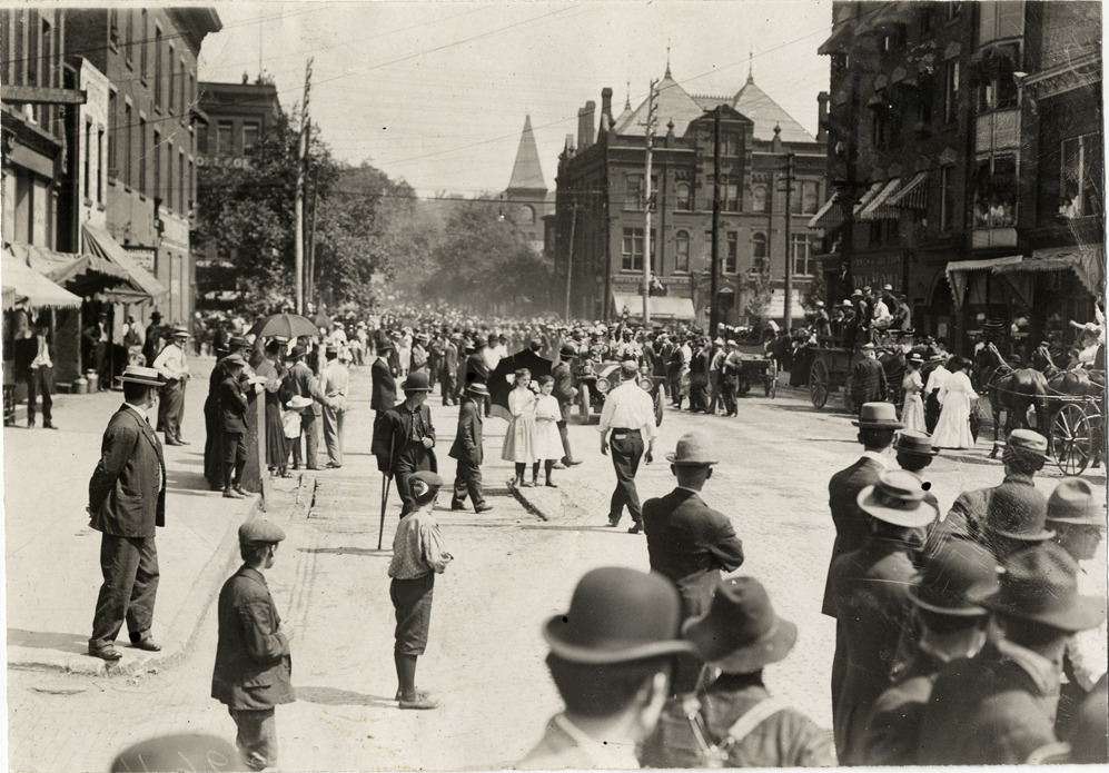 Favorite this☆ Crowd watching motorists in automobile, 1908 Glidden Tour Description: View of crowd watching motorists in car during the 1908 Glidden Tour. Commercial buildings in background. Handwritten on back: "Tours--Glidden Tour, 1908." Details Resource ID: na023975 Subject: Crowds Automobiles Glidden Tour (1908) Automobile driving--Competitions--United States Photographic prints Date Issued: 1908-07 Format: 1 photographic print ; 4.75 x 6.75 in. Member of: National Automotive History Collection Lazarnick Collection Filing Location: Tours--Glidden Tour, 1908 #37 Rights: Physical rights are retained by DPL. Copyright is retained in accordance with U.S. copyright laws.