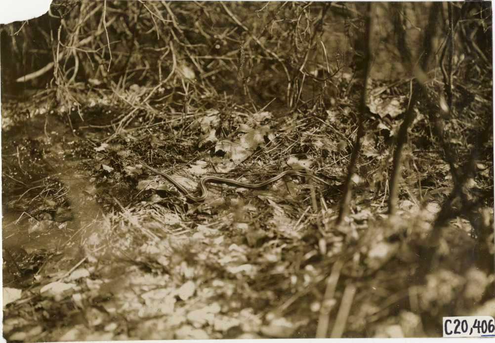 Favorite this☆ Snake, 1908 Glidden pathfinding expedition Description: View of snake on ground during the pathfinding expedition for the 1908 Glidden Tour. Handwritten on back: "Tours--Glidden Tour Pathfinder, 1908." Details Resource ID: na024290 Subject: Snakes Glidden Tour (1908) Automobile travel Photographic prints Date Issued: 1908 Format: 1 photographic print ; 4.75 x 6.75 in. Member of: National Automotive History Collection Lazarnick Collection Filing Location: Tours--Glidden Tour Pathfinder, 1908 #10 Negative Number: Negative #C20,406 Rights: Physical rights are retained by DPL. Copyright is retained in accordance with U.S. copyright laws.
