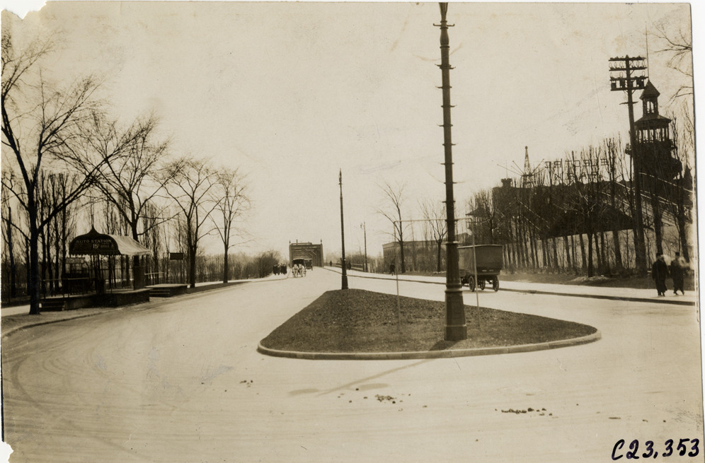 Approach to Belle Isle Bridge, Detroit, Michigan, 1909 Glidden pathfinding expedition
