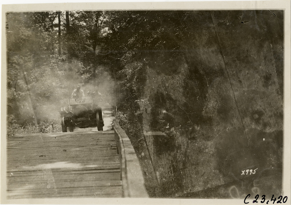 Favorite this☆ Motorists in Cutting automobile crossing wooden bridge, 1910 Glidden Tour Description: View of motorists in a Cutting "40" car crossing a wooden bridge during the 1910 Glidden Tour. Handwritten on back: "Tours--Glidden Tour, 1910." Details Resource ID: na024650 Subject: Automobiles Clarke-Carter Automobile Company Wooden bridges Glidden Tour (1910) Automobile driving--Competitions--United States Photographic prints Date Issued: 1910 Format: 1 photographic print ; 4.75 x 6.75 in. Member of: National Automotive History Collection Lazarnick Collection Filing Location: Tours--Glidden Tour, 1910 #3 Negative Number: Negative #C23,420 Rights: Physical rights are retained by DPL. Copyright is retained in accordance with U.S. copyright laws.