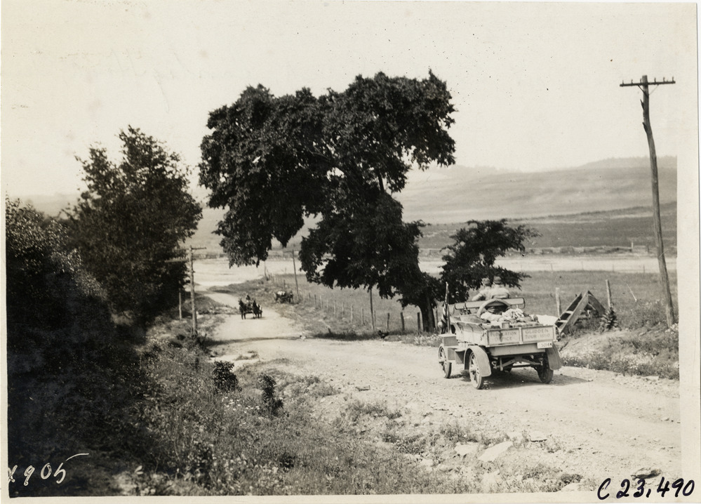 Rapid truck traveling on rural road at Bigby Creek, Sandy Hook, Tennessee, 1910 Glidden Tour