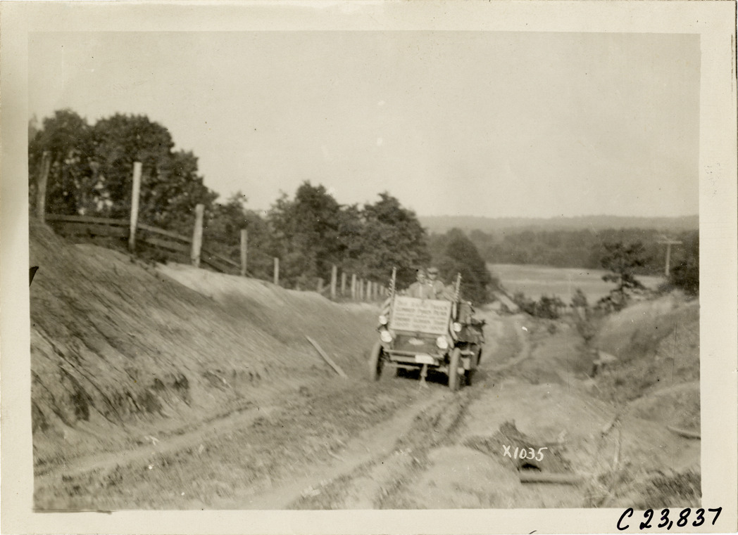 Favorite this☆ Motorists in Rapid truck traveling on rural road, 1910 Glidden Tour Description: View of motorists in Rapid truck traveling on rural dirt road during the 1910 Glidden Tour. Sign on truck reads: "This Rapid truck climbed Pikes Peak, 15,000 feet above sea level covered Glidden Tours 1907, 1908, 1909." Handwritten on back: "Tours--Glidden Tour, 1910." Details Resource ID: na025069 Subject: Trucks Rapid Motor Truck Company Rural roads Glidden Tour (1910) Automobile driving--Competitions--United States Photographic prints Date Issued: 1910 Format: 1 photographic print ; 5 x 7 in. Member of: National Automotive History Collection Lazarnick Collection Filing Location: Tours--Glidden Tour, 1910 #20 Negative Number: Negative #C23,837 Rights: Physical rights are retained by DPL. Copyright is retained in accordance with U.S. copyright laws.