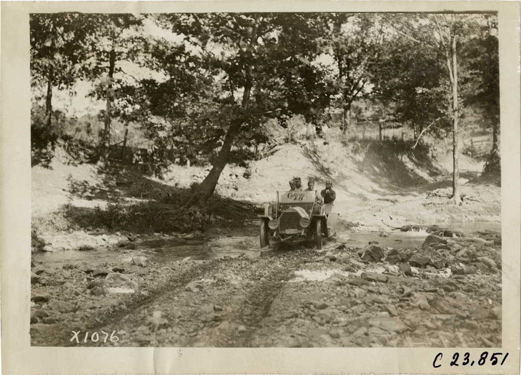 Favorite this☆ Motorists in Cutting automobile crossing river or creek, 1910 Glidden Tour Description: View of motorists in Cutting "40" car car crossing a river or creek during the 1910 Glidden Tour. Handwritten on back: "Tours--Glidden Tour, 1910." Details Resource ID: na025083 Subject: Automobiles Clarke-Carter Automobile Company Rivers Glidden Tour (1910) Automobile driving--Competitions--United States Photographic prints Date Issued: 1910 Format: 1 photographic print ; 5 x 7 in. Member of: National Automotive History Collection Lazarnick Collection Filing Location: Tours--Glidden Tour, 1910 #20 Negative Number: Negative #C23,851 Rights: Physical rights are retained by DPL. Copyright is retained in accordance with U.S. copyright laws.