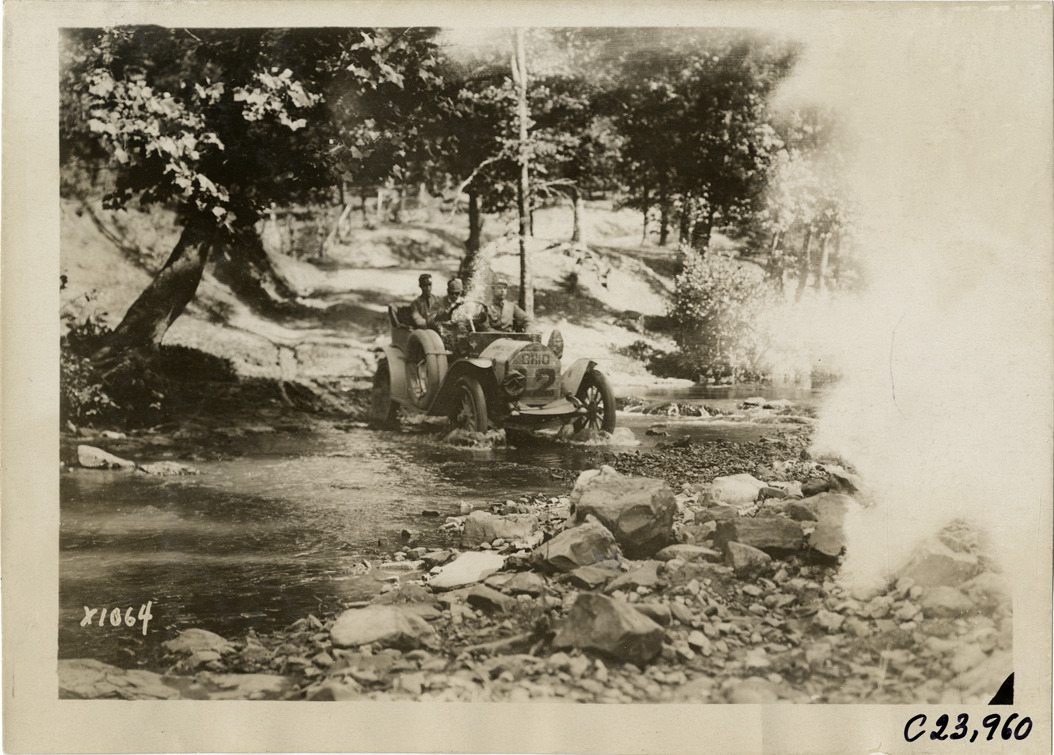 Favorite this☆ Motorists in Ohio automobile crossing river or creek, 1910 Glidden Tour Description: View of motorists in Ohio car no. 12 crossing river or creek during the 1910 Glidden Tour. Handwritten on back: "Tours--Glidden Tour, 1910." Details Resource ID: na025192 Subject: Automobiles Ohio Motor Car Company Rivers Glidden Tour (1910) Automobile driving--Competitions--United States Photographic prints Date Issued: 1910 Format: 1 photographic print ; 5 x 7 in. Member of: National Automotive History Collection Lazarnick Collection Filing Location: Tours--Glidden Tour, 1910 #24 Negative Number: Negative #C23,960 Rights: Physical rights are retained by DPL. Copyright is retained in accordance with U.S. copyright laws.