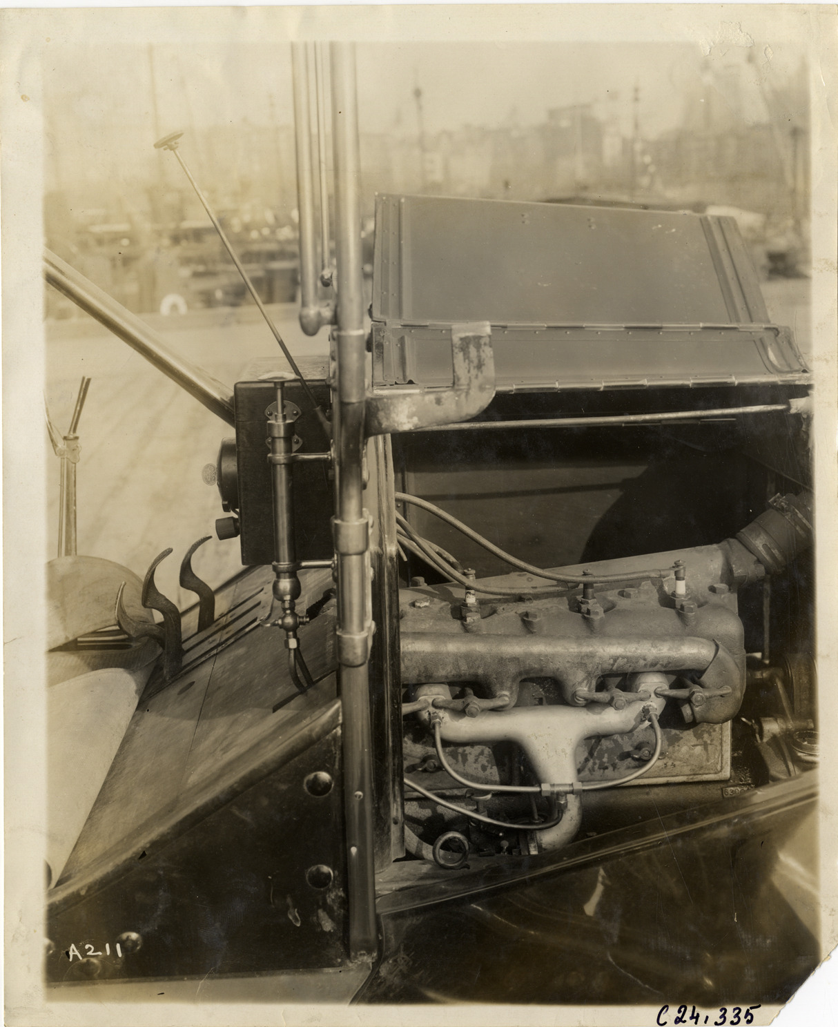 Favorite this☆ Automobile engine, 1911 Glidden Tour Description: Close-up view of car engine during the 1911 Glidden Tour. Handwritten on back: "Tours--Glidden Tour, 1911." Details Resource ID: na025576 Subject: Automobiles--Motors Glidden Tour (1911) Automobile driving--Competitions--United States Photographic prints Date Issued: 1911-10 Format: 1 photographic print ; 10 x 8 in. Member of: National Automotive History Collection Lazarnick Collection Filing Location: Tours--Glidden Tour, 1911 #2 Negative Number: Negative #C24,335 Rights: Physical rights are retained by DPL. Copyright is retained in accordance with U.S. copyright laws.
