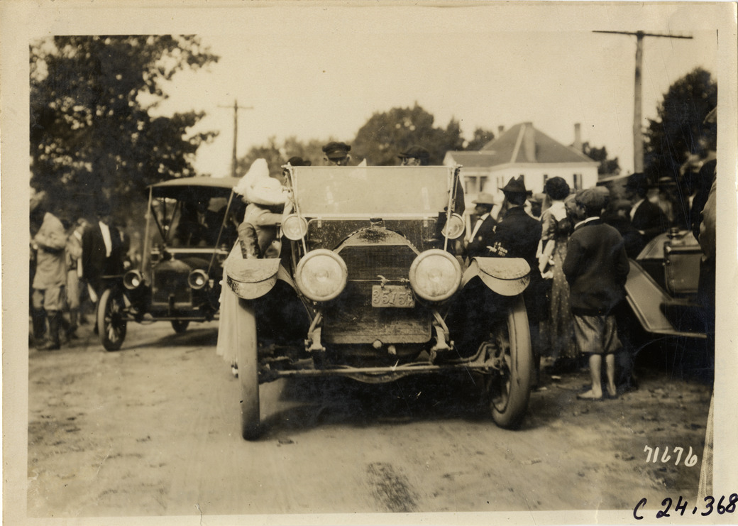 Favorite this☆ Motorists in automobile, 1911 Glidden Tour Description: View of motorists in car during the 1911 Glidden Tour. Spectators in background. Stamped on back: "Spooner & Wells, Inc., photographers, telephones 3472-3473 Columbus, 1931 Broadway, New York." Handwritten on back: "Tours--Glidden Tour, 1911." Details Resource ID: na025609 Creator: Spooner & Wells Subject: Automobiles Spectators Glidden Tour (1911) Automobile driving--Competitions--United States Photographers--New York (State)--New York Photographic prints Date Issued: 1911-10 Format: 1 photographic print ; 5 x 7 in. Member of: National Automotive History Collection Lazarnick Collection Filing Location: Tours--Glidden Tour, 1911 #3 Negative Number: Negative #C24,368 Rights: Physical rights are retained by DPL. Copyright is retained in accordance with U.S. copyright laws.