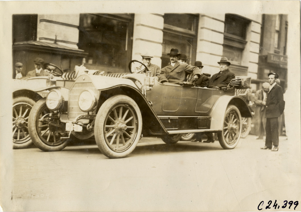 View of Governor Hoke Smith, of Georgia, and motorists in car during the 1911 Glidden Tour. Stamped on back: "Spooner & Wells, Inc., photographers, telephones 3472-3473 Columbus, 1931 Broadway, New York." Handwritten on back: "Tours--Glidden Tour, 1911."