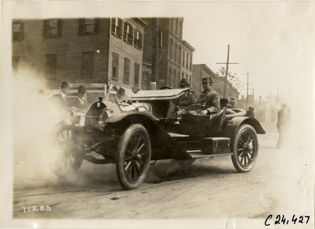 Favorite this☆ Motorists posing in automobile, 1911 Glidden Tour Description: View of motorists posing in car during the 1911 Glidden Tour. Stamped on back: "Spooner & Wells, Inc., photographers, telephones 3472-3473 Columbus, 1931 Broadway, New York." Handwritten on back: "Tours--Glidden Tour, 1911." Details Resource ID: na025668 Creator: Spooner & Wells Subject: Automobiles Glidden Tour (1911) Automobile driving--Competitions--United States Photographers--New York (State)--New York Photographic prints Date Issued: 1911-10 Format: 1 photographic print ; 5 x 7 in. Member of: National Automotive History Collection Lazarnick Collection Filing Location: Tours--Glidden Tour, 1911 #6 Negative Number: Negative #C24,427 Rights: Physical rights are retained by DPL. Copyright is retained in accordance with U.S. copyright laws.