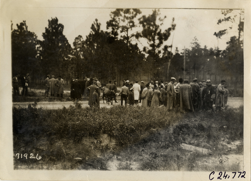 Motorists gathered near scene of accident involving Cunningham automobile, 1911 Glidden Tour