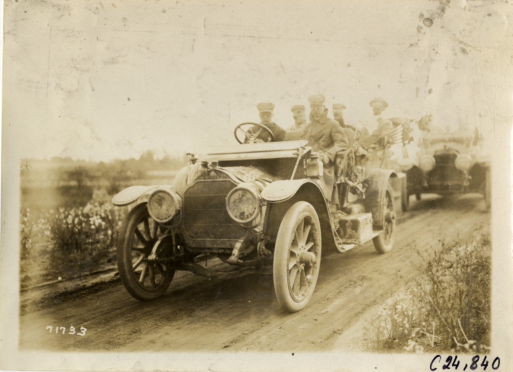 Favorite this☆ Motorists posing in automobile, 1911 Glidden Tour Description: View of motorists posing in car on rural dirt road during the 1911 Glidden Tour. Stamped on back: "Spooner & Wells, Inc., photographers, telephones 3472-3473 Columbus, 1931 Broadway, New York." Handwritten on back: "Tours--Glidden Tour, 1911." Details Resource ID: na026090 Creator: Spooner & Wells Subject: Automobiles Glidden Tour (1911) Automobile driving--Competitions--United States Photographers--New York (State)--New York Photographic prints Date Issued: 1911-10 Format: 1 photographic print ; 5 x 7 in. Member of: National Automotive History Collection Lazarnick Collection Filing Location: Tours--Glidden Tour, 1911 #22 Negative Number: Negative #C24,840 Rights: Physical rights are retained by DPL. Copyright is retained in accordance with U.S. copyright laws.