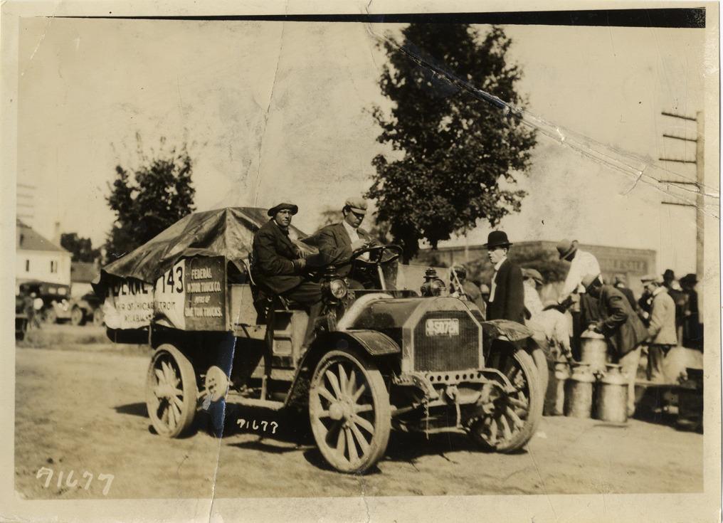 Favorite this☆ Motorists in Federal truck, 1911 Glidden Tour Description: View of driver and passenger in Federal truck during the 1911 Glidden Tour. Stamped on back: "Spooner & Wells, Inc., photographers, telephones 3472-3473 Columbus, 1931 Broadway, New York." Handwritten on back: "Tours--Glidden Tour, 1911." Details Resource ID: na026129 Creator: Spooner & Wells Subject: Trucks Federal Motor Truck Company Glidden Tour (1911) Automobile driving--Competitions--United States Photographers--New York (State)--New York Photographic prints Date Issued: 1911-10 Format: 1 photographic print ; 5 x 7 in. Member of: National Automotive History Collection Lazarnick Collection Filing Location: Tours--Glidden Tour, 1911 #24 Rights: Physical rights are retained by DPL. Copyright is retained in accordance with U.S. copyright laws.