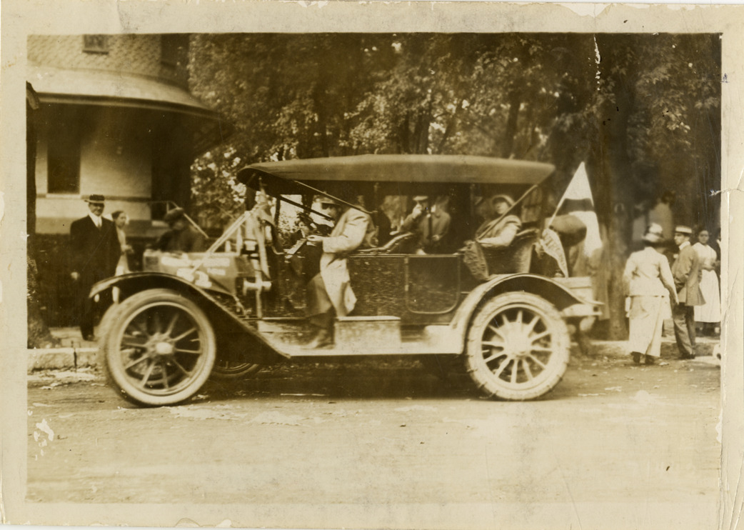 Motorists in Cadillac automobile, 1911 Glidden Tour