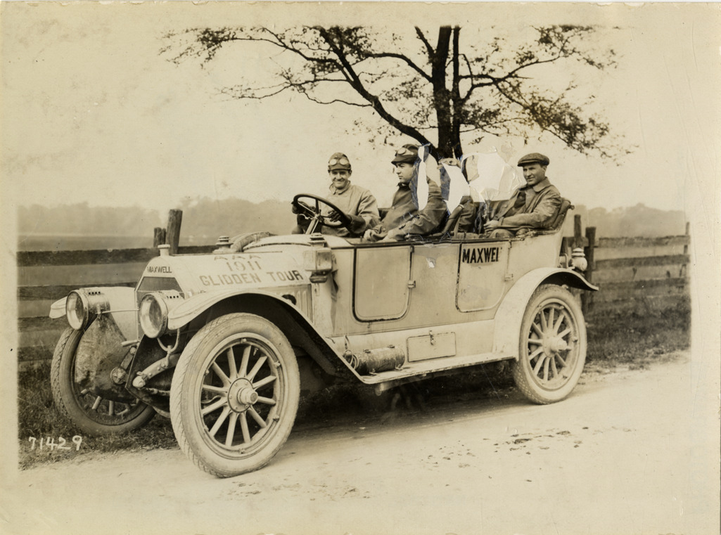 Motorists in Maxwell automobile on roadside, 1911 Glidden Tour