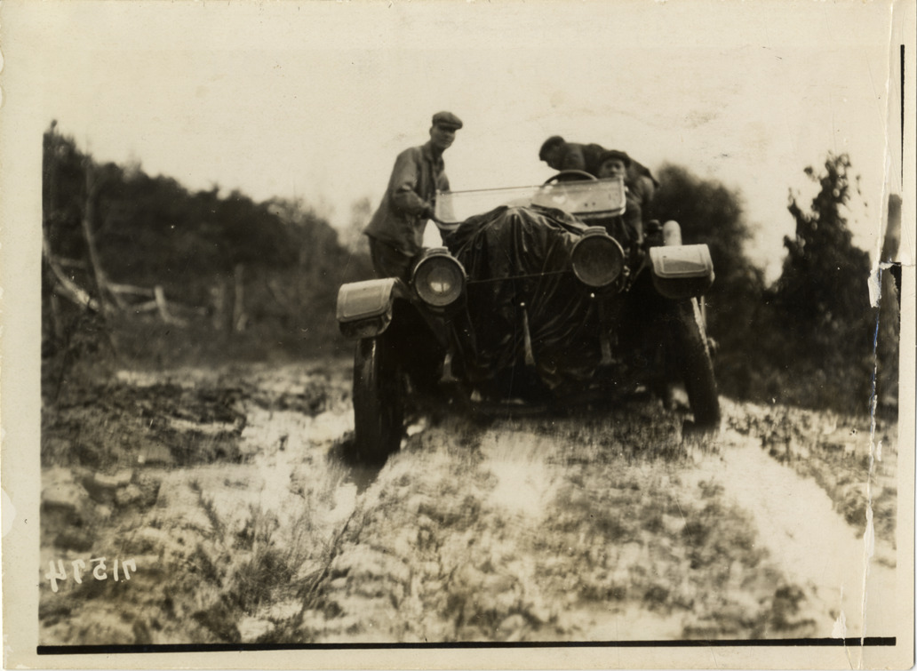 Favorite this☆ Motorists with automobile on muddy rural road, 1911 Glidden Tour Description: View of motorists with car on muddy rural road during the 1911 Glidden Tour. Handwritten on back: "Tours--Glidden Tour, 1911." Details Resource ID: na026393 Subject: Automobiles Dirt roads Glidden Tour (1911) Automobile driving--Competitions--United States Photographic prints Date Issued: 1911-10 Format: 1 photographic print ; 5 x 7 in. Member of: National Automotive History Collection Lazarnick Collection Filing Location: Tours--Glidden Tour, 1911 #35 Rights: Physical rights are retained by DPL. Copyright is retained in accordance with U.S. copyright laws.